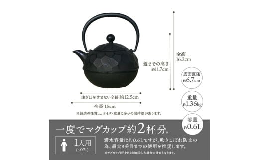 南部鉄器 鉄瓶 ボロノイ0.6L