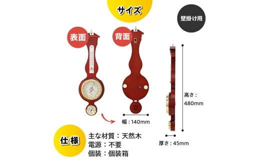 トラディション気象計 BM-715 みずさわ気象計器 温度計 湿度計 気圧計 計測器 感染症対策 気象病対策 天然木 クラシカル インテリア アナログ式 電池不要 壁掛け用 エンペックス [AJ054]