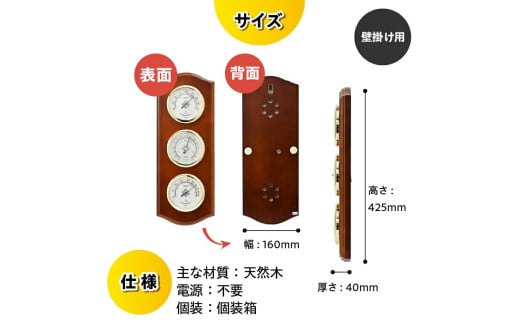 ウェザーガイド気象計 BM-716 温度計 湿度計 気圧計 計測器 感染症対策 気象病対策 天然木 クラシカル インテリア アナログ式 電池不要 壁掛け用 みずさわ気象計器 エンペックス [AJ055]