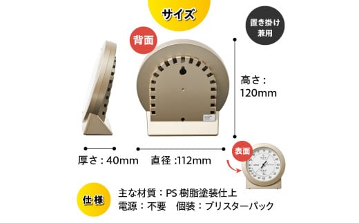 スーパーEX高品質温・湿度計 EX-2768 温度計 高精度 本格派 感染症対策 健康管理 シンプルな文字盤 アナログ式 電池不要 置き掛け兼用 計測器 みずさわ気象計器 エンペックス社 [AJ079]