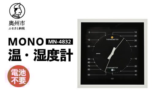 MONO温度・湿度計 MN-4832 ブラック 温湿度計 感染症対策 健康管理 天然木使用 モノトーン シンプル シック アナログ式 電池不要 置き掛け兼用 [AJ103]