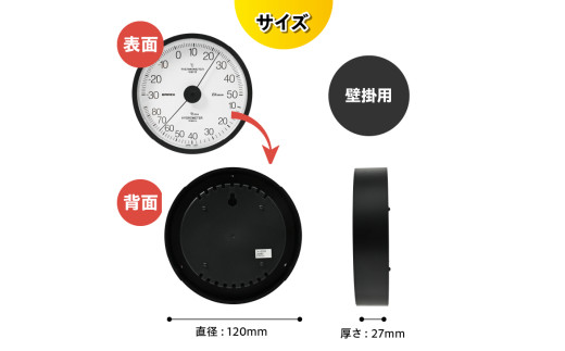 エクストラ温・湿度計 TM-6202 ブラック 感染症対策 健康管理 シンプル 見やすい アナログ式 電池不要 壁掛用 [AJ118]