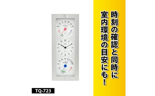 ウェザータイム TQ-723 温度計 湿度計 時計 感染症対策 健康管理 シンプル デザイン インテリア 壁掛用 [AJ119]
