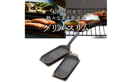 南部鉄器 焼き焼きグリルスリム 2個セット スリムタイプ 伝統工芸品 焼き 魚焼きグリル 鉄の焼き皿 うつわ 調理ツール レトロ キッチン用品 日用品 雑貨 直火 ガス対応 IH調理器非対応 岩手県 奥州市 [Z0047]