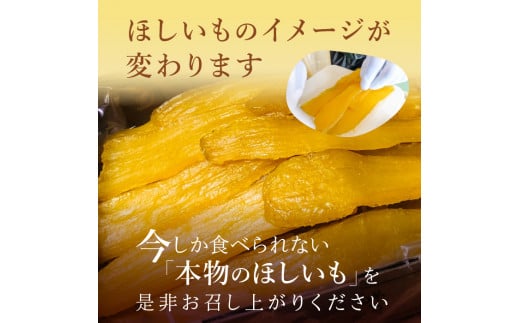 自社栽培のサツマイモ「峰姫」使用。鮮やかな色としっとりで甘い人気の干し芋。