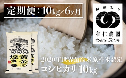 先行予約《定期便》令和7年産 コシヒカリ 「黄金の煌き」10kg×6ヶ月 精白米 飛騨の米 和仁農園 白米 金賞受賞