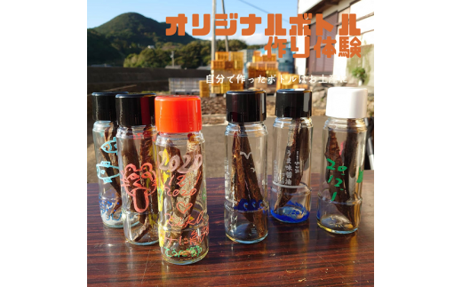 見学後は場所を移し落ち着いた場所で宗田節のうま味醤油オリジナルボトル作り体験、削り器で宗田節削り体験・試食をしていただきます。