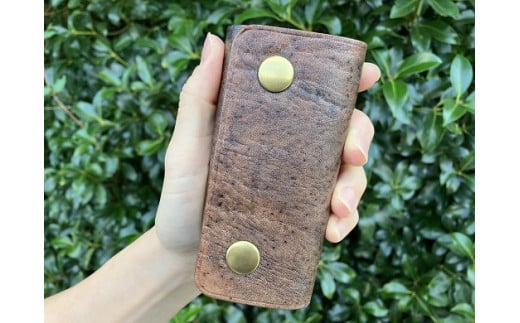 自ら獲った鹿と猪の皮を植物タンニンで鞣し、作成したキーケースです。