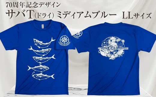 7. 地域限定オリジナルデザインTシャツ さばT(ミディアムブルー・ドライ素材) LLサイズをお届け 男女兼用 サバT 半袖 トップス スポーツ用品【R01058-5】