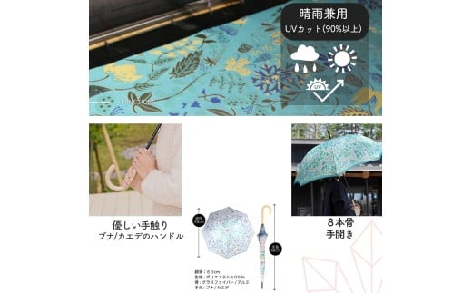 高級織物傘【婦人長傘】 スティグ・リンドベリ 晴雨兼用傘 ベルサ ブルー 北欧デザイン 傘 レディース 槇田ブランド / 雨具 雨傘 日傘 親骨60cm UVカット 8本骨 手開き UV加工 送料無料 山梨県 槇田商店【n0640-02_mak】