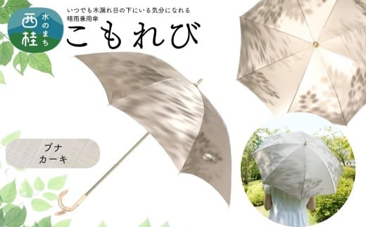 高級織物傘【婦人長傘】 こもれび 晴雨兼用傘 ブナ カーキ 傘 レディース 槇田ブランド 葉 リーフ ナチュラル / 雨具 雨傘 日傘 軽量 親骨50cm UVカット 遮光 8本骨 手開き UV加工 送料無料 山梨県 日本製 槇田商店【n0654-02_mak】