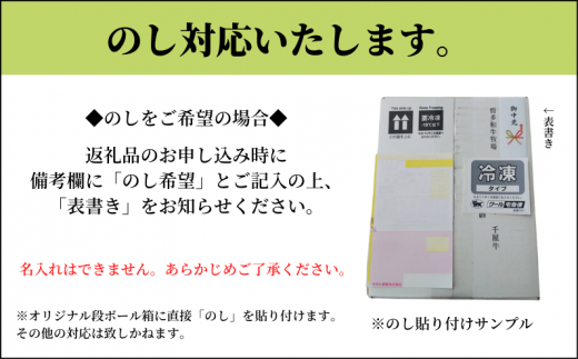 のしをご希望の方は、お申し込み時備考欄に「のし希望」・「表書き」を合わせてご記入ください。