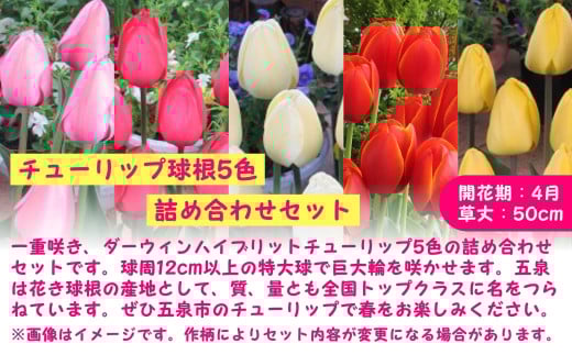 【 先行予約 】 チューリップ 球根 特大球 100球入 ( 5色×20球 ) 一重咲き ダーウィンハイブリットチューリップ | 新潟県 五泉市 新潟県花卉球根農業協同組合 ( 2025年9月中旬より順次発送 )