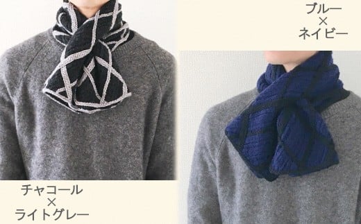 絶妙な格子柄とカラーが目を惹く男女兼用のショートマフラー クールもナチュラルも〇