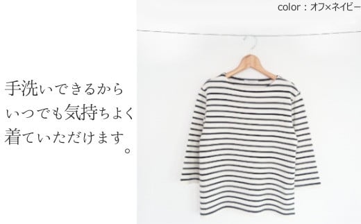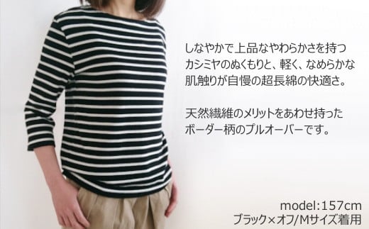 七分袖 ボーダー柄 ニット ( オフ×ライトグレー・M ) レディース 日本製 | 春 春夏 ボーダー カットソー ボートネック シンプル 綿 カシミア 新潟県 五泉市 高橋ニット株式会社
