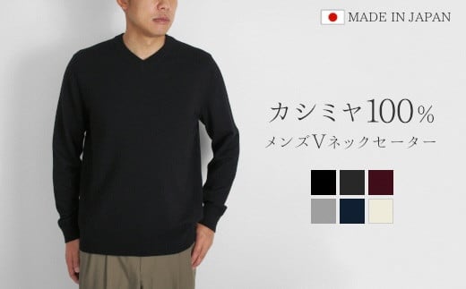 Vネックセーター カシミヤ 100% ( ライトグレー・M ) メンズ 日本製 | ニット Vネック 薄手 無地 シンプル 長袖 秋冬 冬 新潟県 五泉市 高橋ニット株式会社