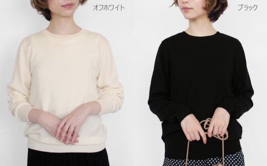 クルーネック セーター カシミヤ 100% ( オフホワイト・L ) レディース 日本製 | ニット クルーネックセーター 薄手 無地 シンプル 長袖 秋冬 冬 新潟県 五泉市 高橋ニット株式会社