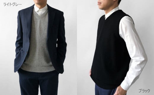 7. ニット ベスト Vネックカシミヤ 100% ( ブラック・M ) メンズ 日本製 | セーター ニットベスト 薄手 無地 シンプル 秋 冬 春 新潟県 五泉市 高橋ニット株式会社