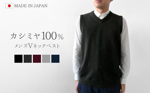 ニット ベスト Vネックカシミヤ 100% ( ライトグレー・M ) メンズ 日本製 | セーター ニットベスト 薄手 無地 シンプル 秋 冬 春 新潟県 五泉市 高橋ニット株式会社
