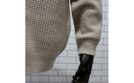 そして、編地を畦編みにすることで表情を大胆に表現することができ、糸の良さが活かされた高級感を演出しています。