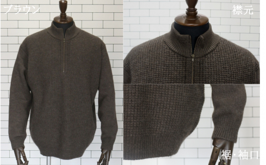 セーター ハーフジップセーター ( ベージュ L ) メンズ ニット ウール | 長袖 無地 カジュアル シンプル おしゃれ 男性 プレゼント ギフト 秋冬 秋 冬 新潟県 五泉市 有限会社桜井メリヤス工場