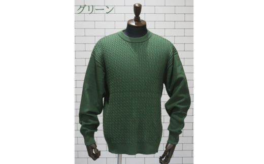 スウェット ケーブル柄 スウェットプルオーバー ( グリーン L ) メンズ ニット 綿100% | 長袖 無地 カジュアル シンプル おしゃれ 男性 ギフト 秋冬 秋 冬 新潟県 五泉市 有限会社桜井メリヤス工場
