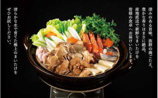 長期熟成された大株のまいたけは、迫力と美しさを兼ね備え、食卓を華やかに彩ります。