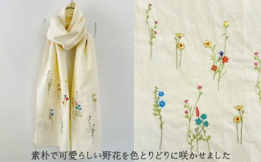 ストール フラワー柄 刺繍ストール オーガニックコットン ( イエロー ) レディース 日本製 | おしゃれ シンプル マフラー 春夏 春 夏 プレゼントギフト 母の日 新潟県 五泉市 有限会社田中刺繍