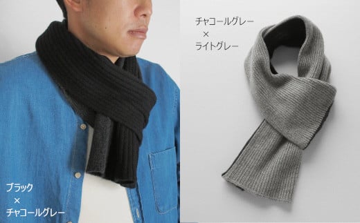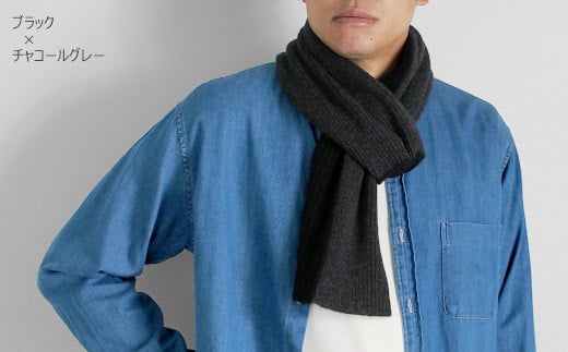 カラー:ブラック×チャコールグレー/チャコールグレー×ライトグレー/ライトグレー×ネイビー/ネイビー×プルシアン 素材:カシミア100% サイズ:長さ約85㎝ 幅約19㎝