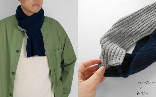 マフラー メンズ カシミヤ 100% ( ライトグレー×ネイビー ) 日本製 | バイカラー リバーシブル ストール シンプル レディース 秋 秋冬 プレゼント ギフト 新潟県 五泉市 高橋ニット株式会社