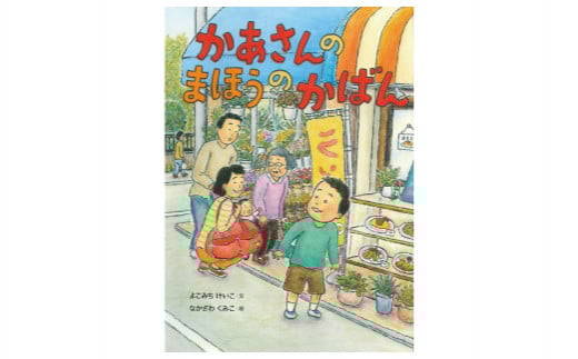 ・絵本「かあさんのまほうのかばん」 ×1冊 ・オリジナルポストカード ×2枚 ※全12種の中から当会で2枚を選んでお送りさせていただきます。絵のご指定はいただけません。