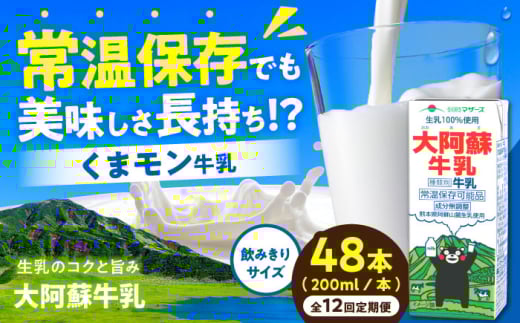 【全12回定期便】大阿蘇牛乳 ロングライフ くまモンラベル 200ml 48本(12本入り×4ケース) 9.6L【合同会社 福福堂】成分無調整牛乳 ミルク カルシウム 牛乳 常温保存 長期保存 送料無料 [AYAC057]