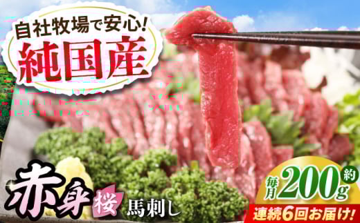 【全6回定期便】『純国産』熊本の味「桜」赤身 馬刺し スライス 約200g タレ付【有限会社 九州食肉産業】 馬刺 馬肉 桜肉 馬 うま ウマ ヘルシー 国産 新鮮 専用タレ 上質 低カロリー 高タンパク 冷凍 生食 生肉 専用醤油付 専用 醤油 専用タレ付 タレ 食品 熊本県 合志 合志市 [AYCN078]