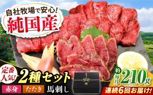 【全6回定期便】『純国産』熊本の味 馬刺し 入門 2種 セット 計約210g(2〜3人前)赤身 タタキ タレ付 馬肉 冷凍 熊本 ばさし 合志 詰め合わせ 定期 定期便 食べ比べ【有限会社 九州食肉産業】 [AYCN102]