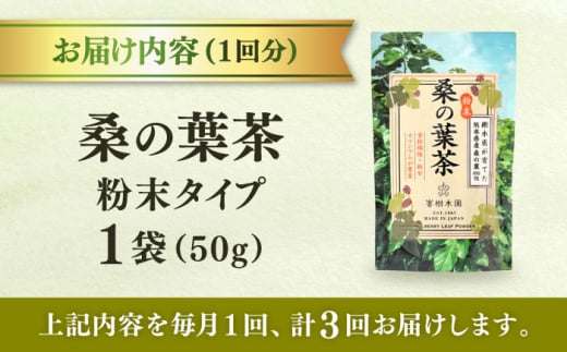 【全3回定期便】樹木医が育てた桑の葉茶(粉末)50g×1袋【株式会社 峯樹木園】合志市 熊本県 お茶 茶 飲料 飲みもの のみもの 粉末 パウダー 飲みやすい 健康 健康維持 栄養 国産 日本 産地直送 日常 [AYBM013]
