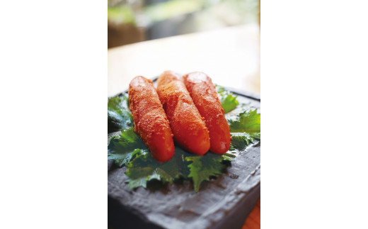 北海道根室から直送のたらこを、隠し味として新潟県魚沼の清酒「八海山」を加えた漬け汁で美しく仕上げました。