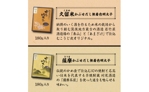 【薩摩かぶせだし辛子明太子】すけとうだらの卵(アメリカ産)、食塩、発行調味液、焼酎、さつまいも、糖類、唐辛子、きんかん、刻み昆布/調味料(アミノ酸等)、甘味料(ソルビット)、酸化防止剤(ビタミンC)、ナイアシン、発色剤(亜硝酸Na)、酵素