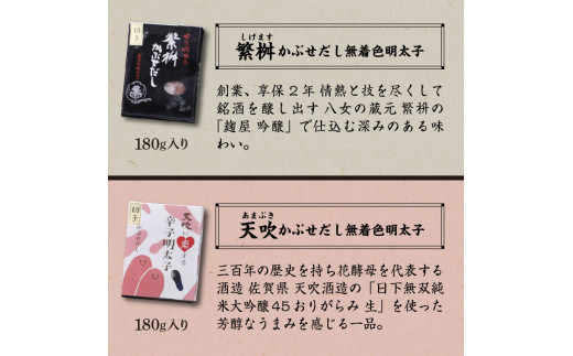 【辛子明太子繁桝かぶせだし】すけとうだらの卵(アメリカ産)、食塩、発行調味液、清酒、甘酒、酒粕、唐辛子、刻み昆布/調味料(アミノ酸等)、甘味料(ソルビット)、酸化防止剤(ビタミンC) ,ナイアシン、発色剤(亜硝酸Na)、酵素