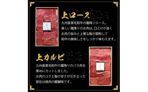 秘伝・焼肉のたれ付 九州産黒毛和牛 上ロース 上カルビセット 計400g