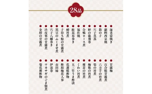 ◆福佐焼 ◆鮭昆布巻き ◆蛸旨煮 ◆子持ち鮎の甘露煮 ◆黒豆のふくませ煮