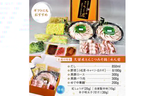 ミシュランガイド掲載のお店【こうじ夜】 『久留米とんこつみそ鍋』セット(3~4人前)_鍋 黒豚肉 とんこつ みそ鍋 セット 3 ~ 4人前 だし 野菜 黒豚ロース 手間いらず 潘陽軒 天然醸造こうじ味噌 専門店の味 旨み 黒豚 冷凍 鮮度そのまま 地場野菜 ゆで中華麺 紅ショウガ 辛子明太子 福岡県 久留米市 お取り寄せ お取り寄せグルメ 送料無料_Cn014