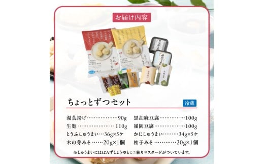 梅の花 ちょっとずつセット_10/14以降 価格改定 梅の花 おかず ちょっとずつ セット かにしゅうまい とうふしゅうまい 湯葉揚げ 生麩 黒胡麻豆腐 嶺岡豆腐 木の芽みそ 柚子みそ 惣菜 豆腐 湯葉 麩 おかずセット 贈り物 ギフト 福岡県 久留米市 お取り寄せ 送料無料_Cx223