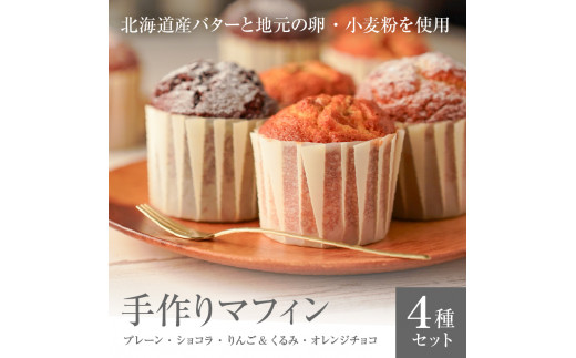 【and RU-】マフィン4個セット_マフィン セット 個数 4個 国産 小麦 卵 使用 人気 4種類 プレーン ショコラ りんご くるみ オレンジチョコ オリジナルギフトBOX and RU- 福岡県 久留米市 お取り寄せ スイーツ デザート おやつ お菓子 焼菓子 冷凍 送料無料 ギフト_Dw110