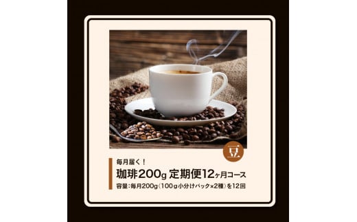 メール便でお届け 1年間毎月お届けコーヒー200g定期便