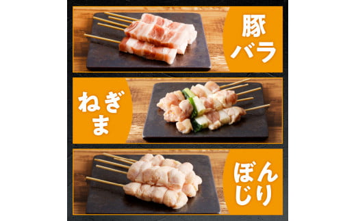 焼鳥串(豚バラ・鳥皮・ぼんじり・ねぎま・モモ身)各種5本(合計25本)