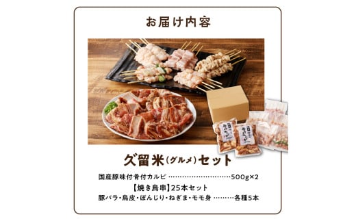 久゛留米(グルメ)セット ~久留米居酒屋浪漫~_久゛留米(グルメ)セット 久留米居酒屋浪漫 味付 骨付 カルピ 500g × 2袋 合計 1kg 焼き鳥 25本 セット スペアリブ オリジナル タレ 豚バラ ねぎま ぼんじり もも 鳥皮 各種 5本 人気 定番グルメ お取り寄せ 福岡県 久留米市 送料無料_Ca220