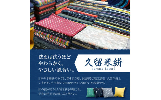 綿100%のTシャツの正面に「水玉格子柄(濃紺/白)の久留米絣」を縫い付けた、風のおくりものオリジナルTシャツです。