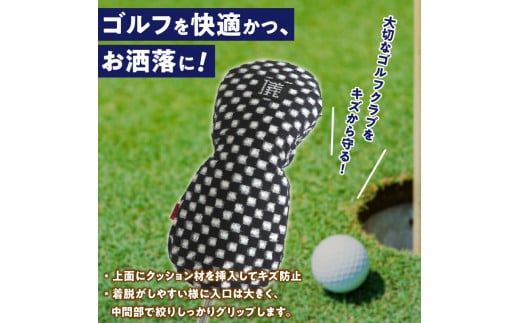 久留米絣を用いた儀右ェ門ブランドのお洒落なゴルフドライバー用ヘッドカバーです