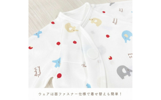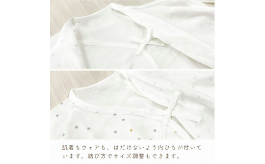 肌着とウェアの一体型で、お着替えがラク。洗濯物が減るのもうれしいポイントです。