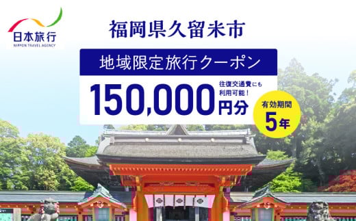 福岡県久留米市 日本旅行 地域限定旅行クーポン150,000円分_【5年間利用可能】 福岡県 久留米市 日本旅行 地域限定 旅行クーポン 150,000円分 宿泊 観光 体験 旅行 トラベル ギフト 温泉 宿泊券 旅館 家族 カップル ホテル クーポン 九州 宿泊予約 プレゼント_Re042